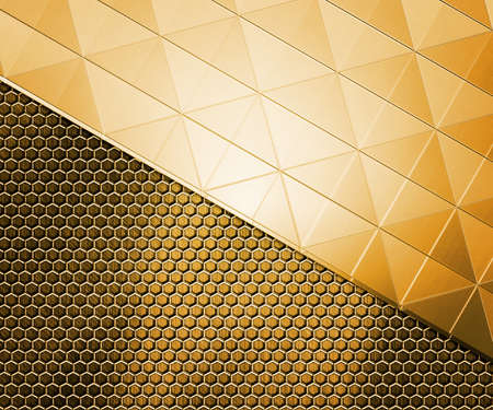 Futuristic honeycomb pattern with golden geometric shapes for modern design. 3d render.