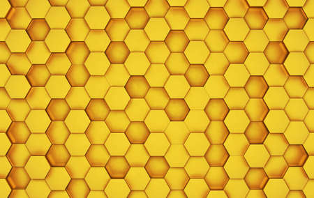 3d illustration of a yellow honeycomb monochrome honeycomb for honey. Pattern of simple geometric hexagonal shapes, mosaic background. Bee honeycomb concept, Beehive