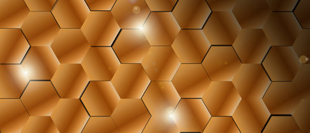 Abstract hexagon background. Hexagons industrial background. Golden bee honeycombs.