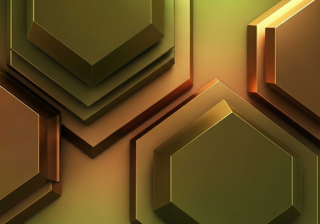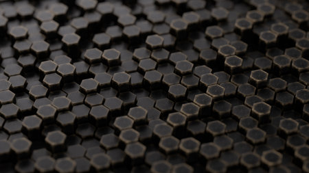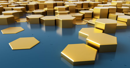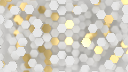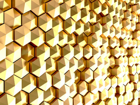 3d rendering of golden hexagon background with depth of field.