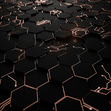 a dark-colored hexagonal pattern with a 3D, dynamic feel