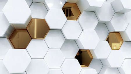 Abstract white luxury background with golden hexagons. 3d rendering