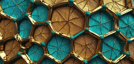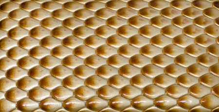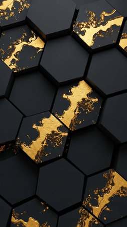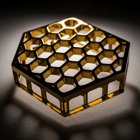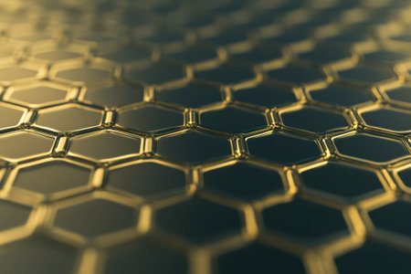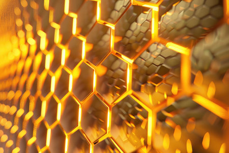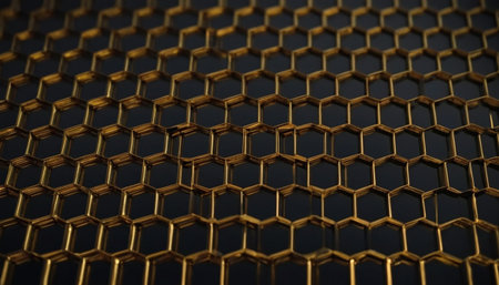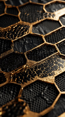 Close-up view of a gold hexagonal pattern that represents innovation and modern design aesthetics.