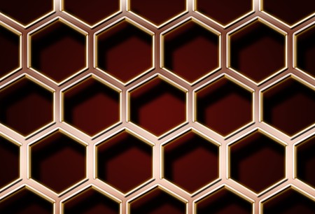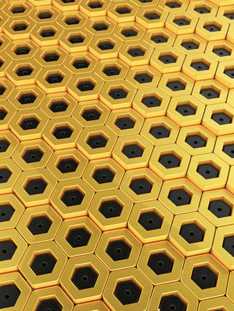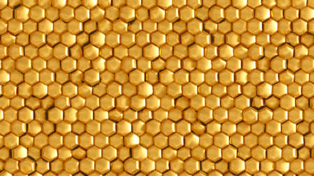 Abstract background of graphic elements - mosaic of gold hexagons with metal shadow effects on the edge - 3D illustration
