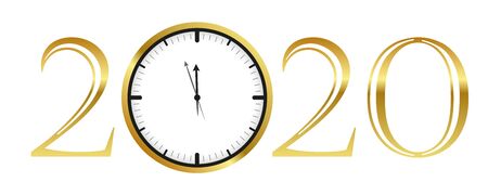 clock shortly before 2020 new year gold typography vector illustration EPS10
