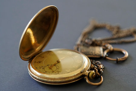 A closeup shot of an old golden watch on a gray surface