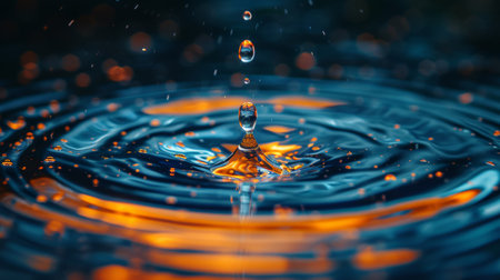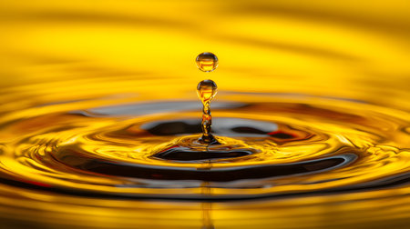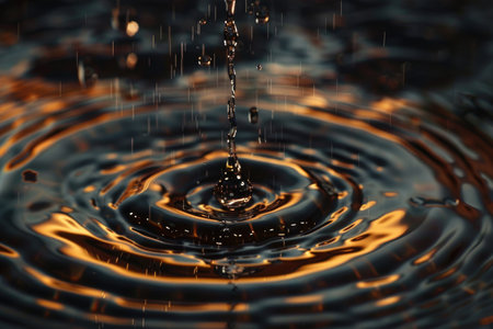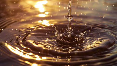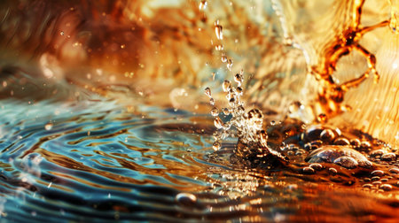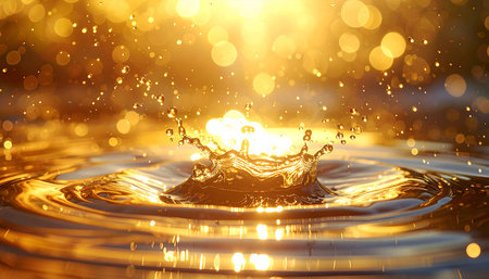 A beautiful water droplet creates ripples in golden liquid, capturing the essence of nature's splendor.