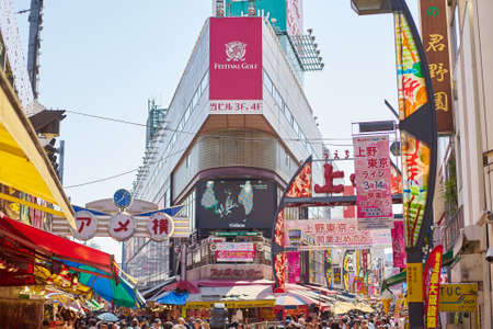 Tokyo, Japan, Japan - 31 March,2015 : Ameyoko busy market street near the Ueno Stations.