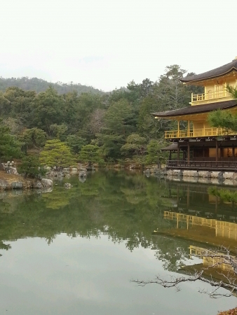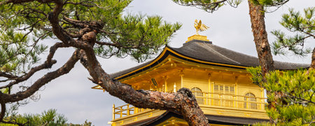 The impressive building structure of Rokuon-ji Kinkakuji (Golden Pavilion) Zen temple, in Kyoto Japan.