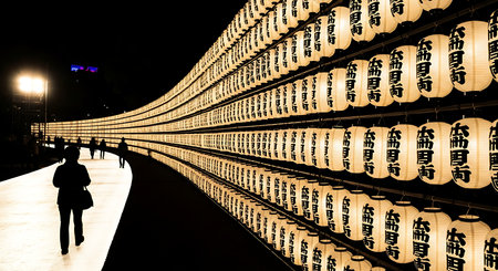 Illuminated lanterns line a pathway in nara, japan, creating a captivating spectacle