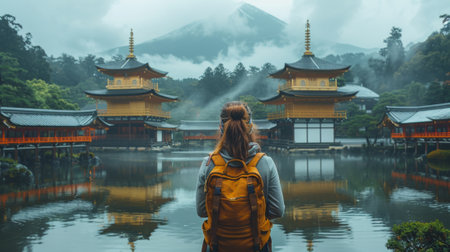 Golden Week Adventure in Japan. woman visit the ancient temples and serene gardens of Kyoto, imagining the emperors and samurai who once walked these grounds.