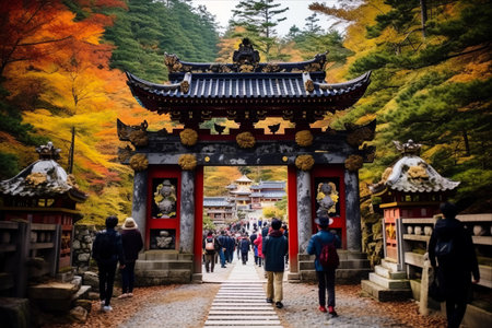 Traditional Japanese Shinto Temple Complex in Autumn, Architecture and Natures Harmony