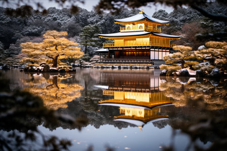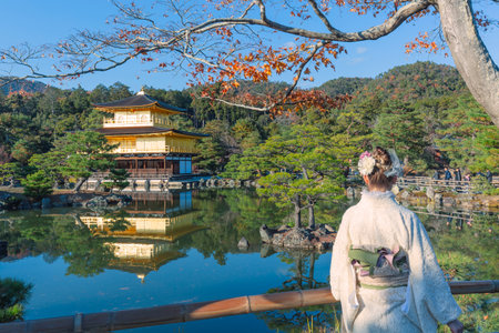 Kinkaku-ji Golden Pavilion Surrounded by Serene Nature Reflections in The Pond, Kyoto, Japan.