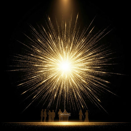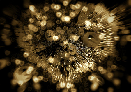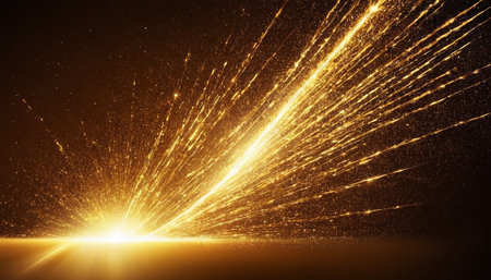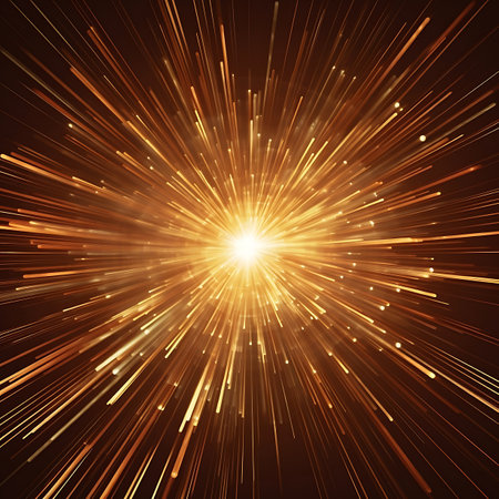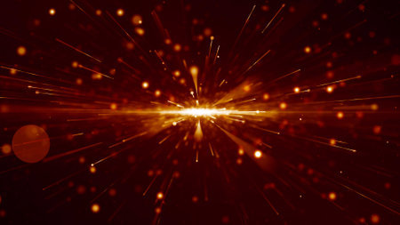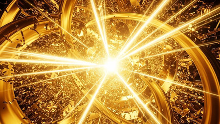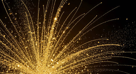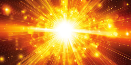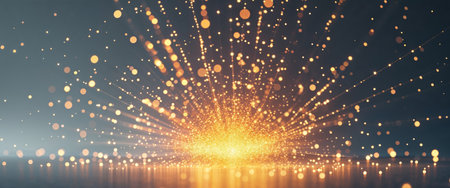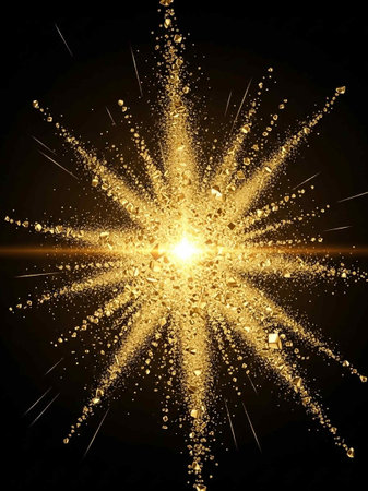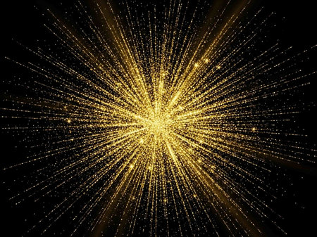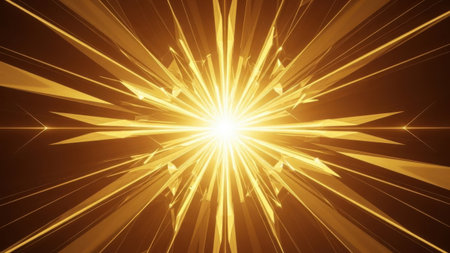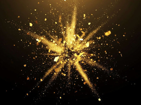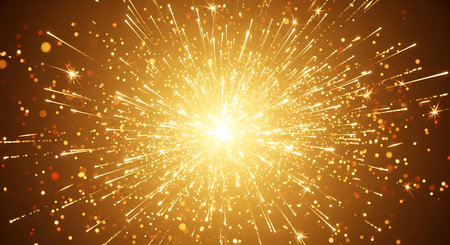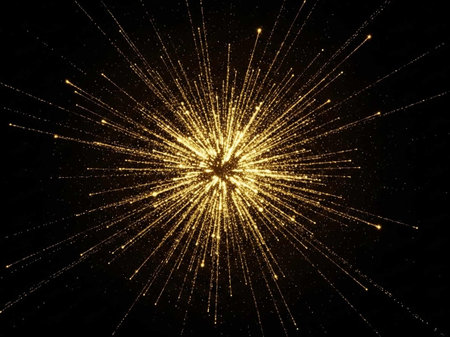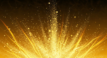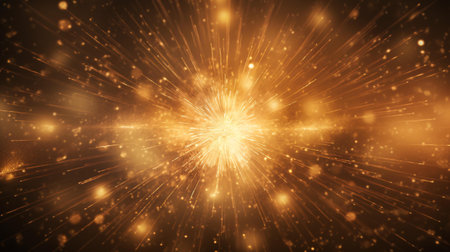 Bright golden energy burst with glowing particles radiating outward in a dynamic abstract explosion.