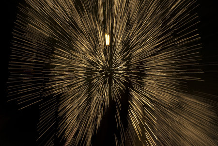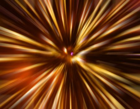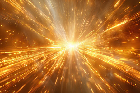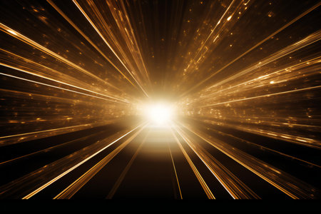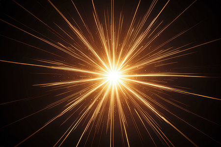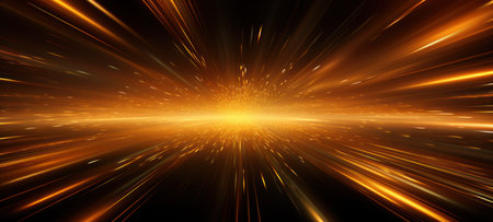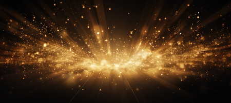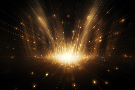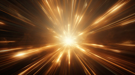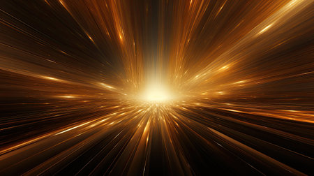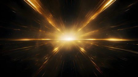 Abstract golden burst of light rays on a dark background