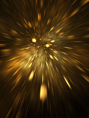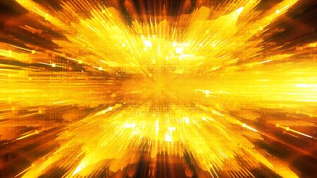 Abstract shiny holiday background with blurred golden rays and sparkles. Fantastic light effect. Digital fractal art. 3d rendering.