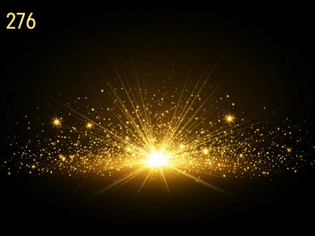 abstract gold star with lens flare effect on black background, magic explosion