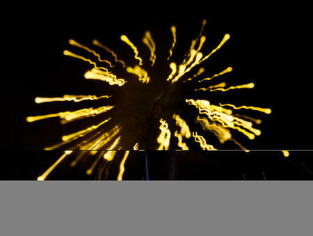 Spectacular christmas fireworks show, color light sparks over black background.