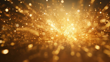 Abstract gold background with glittering particles and bokeh effect.
