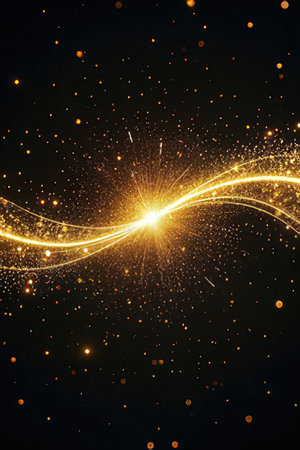 abstract golden lines on a dark background with sparks and light effects