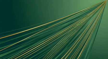 This stunning abstract background features a rich green texture adorned with sleek gold lines, beautifully combining elegance with modern design. Perfect for various creative applications.