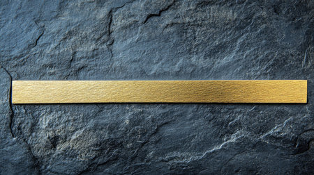 This image features a sleek golden metallic strip resting on a dark slate background, ideal for use in modern design projects or artistic creations.
