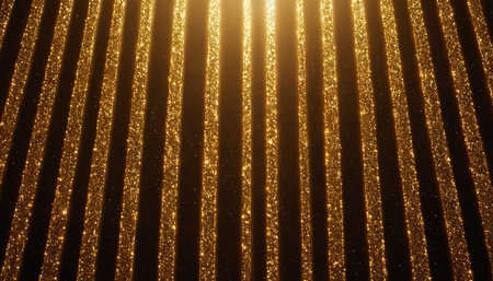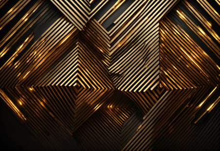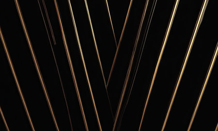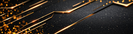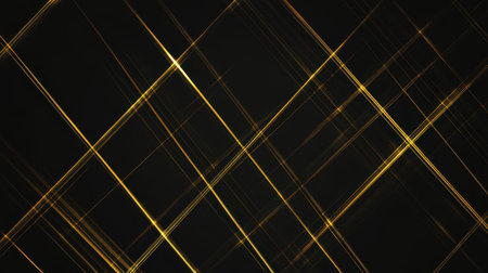 Diagonal golden light streaks glow brightly against a dark black background. Clear details and vibrant colors ...