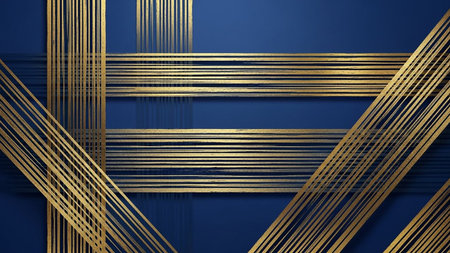 A deep navy background with elegant gold stripes. The rich blue and metallic gold create a classic and luxurious design.