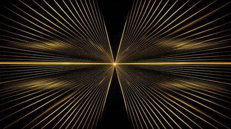 An abstract design featuring radiant golden lines emanating from a central point, creating a mesmerizing and dynamic visual effect perfect for modern backgrounds and artistic projects.