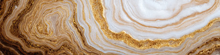 An abstract macro view of a textured surface resembling natural stone or mineral. Rich gold veins and sparkling flecks are embedded within a creamy, beige, and white matrix. The intricate patterns and the contrast between the smooth stone and the metallic gold create an and visual. evokes a sense of opulence and natural beauty, decorative or high-end applications.
