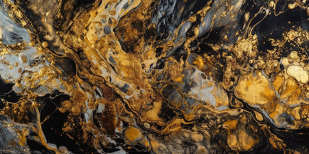 Luxury fluid art painting in alcohol ink technique, black and gold. Imitation of marble stone