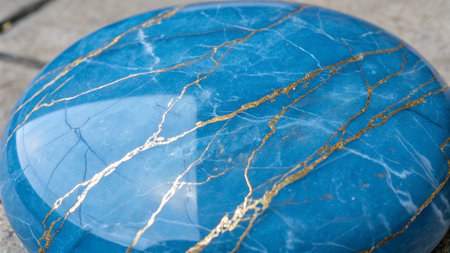 Blue marble stone background with gold veins. Close up of blue marble stone.