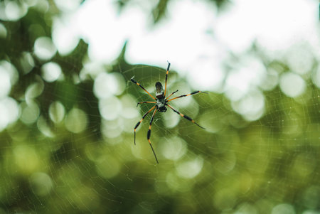Golden orb-web Spider Nephila clavipes at Tropical Rainforest Costa Rica Central America