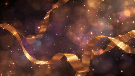 This stunning image captures golden ribbons intertwined with sparkling confetti, creating a festive atmosphere perfect for celebrations, parties, and special events.