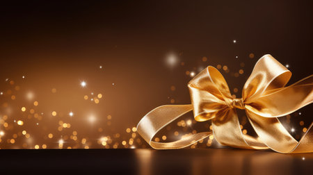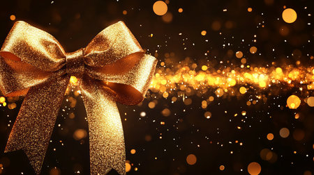 This stunning image features an elegant golden bow, radiating sparkle and glimmers, perfect for festive celebrations. The warm glow and cheerful atmosphere enhance any special occasion.