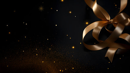 A beautifully crafted golden ribbon gracefully flows across a dark background, sparkling with light. This image captures a sense of elegance, celebration, and creativity.