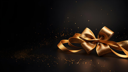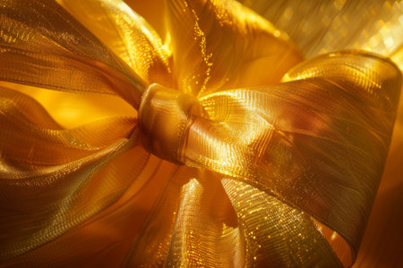 This stunning image showcases a luminous gold bow tied with a coordinating ribbon, embodying sophistication and charm. Perfect for festive events, premium gift wrapping, and holiday décor, etc