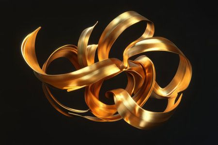 This stunning gold ribbon gracefully twists against a dark background, showcasing shimmering light reflections and an elegant design perfect for modern artistic concepts.