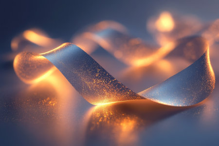 A delicate ribbon glows warmly, reflecting soft light and creating a serene atmosphere with elegant curves.