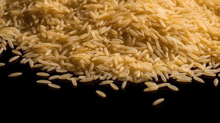 Paddy jasmine rice on dark background with hard light, luxury paddy rice style