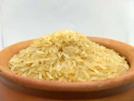 Close up of rice grains. Background texture from steam-treated rice grains.