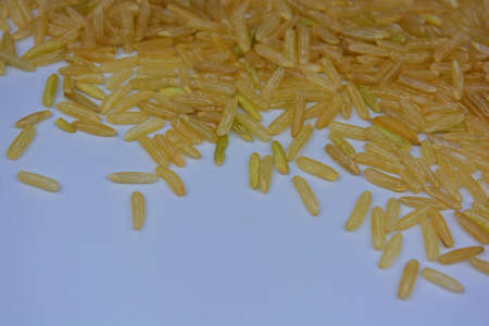 Close up image of raw rice grain on white background