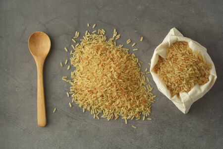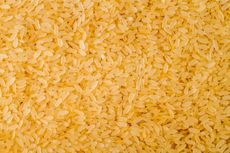Grain yellow parboiled rice as background