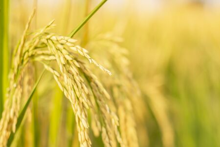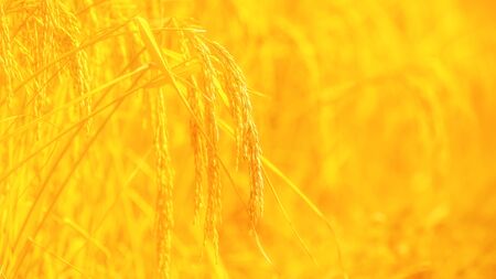 Rice field in the countryside of Thailand. Close up of golden rice.
