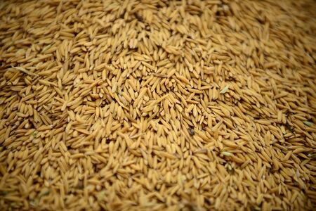 Rice paddy Yellow paddy harvested during harvesting season. Ready to be processed into rice to cook