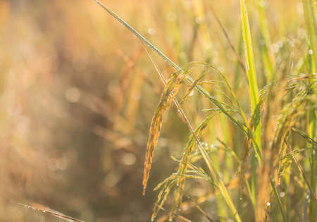 rice in sunrise time, close up rice warm tone