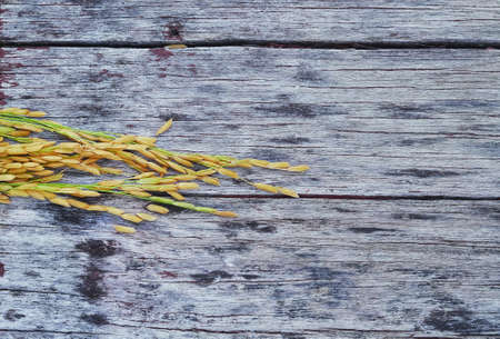 paddy rice on wooden background