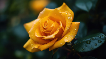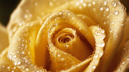 A close-up of a yellow rose with droplets of water on its petals, symbolizing renewal and joy.