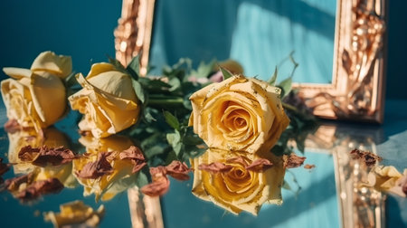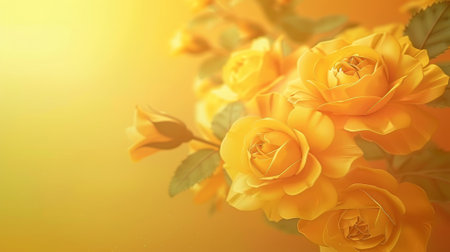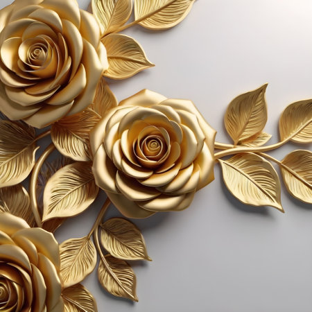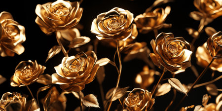 3d render of golden rose flowers on gray background with copy space. generated by AI