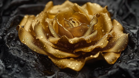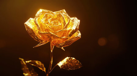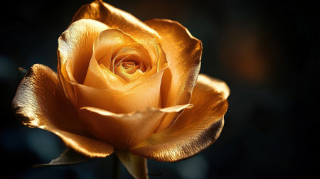 Golden rose captures elegance with its radiant shimmer and intricate petals, showcasing beauty in vivid detail against a dark background